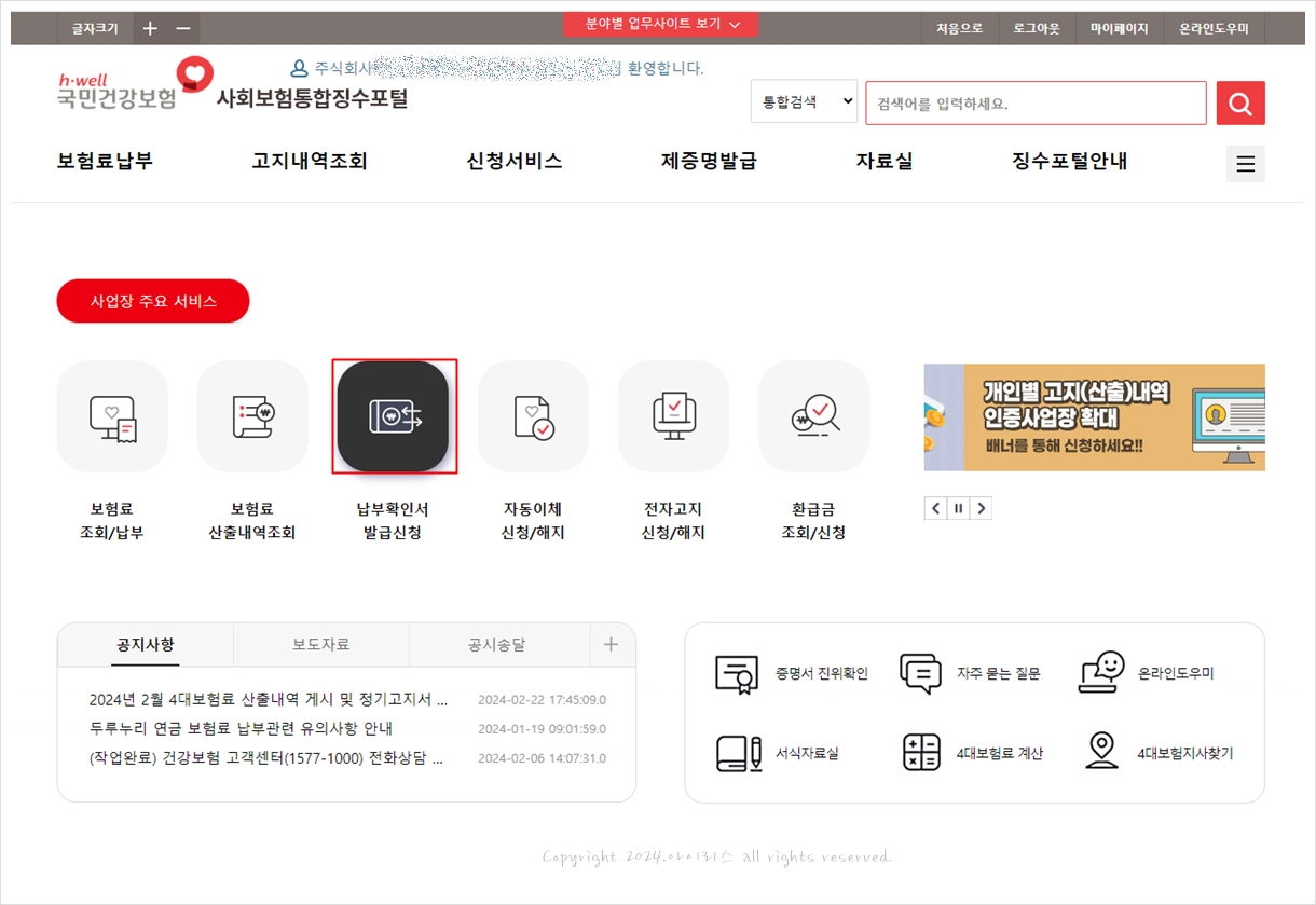 2024. 02. 26 - 국민건강보험 보험료 납부확인서 발급하는 방법