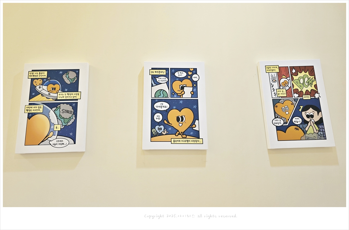 벽에 붙어있는 카페홈즈 캐릭터 만화도 귀욤