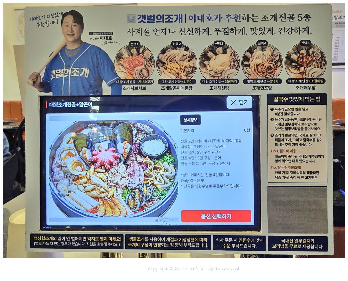 우리는 대왕조개전골(4인분)+알곤이를 선택했다