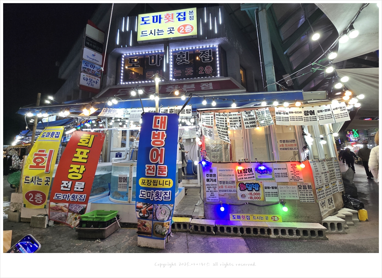 도마횟집에서 물회와 광어회(60,000원)를 구입했다