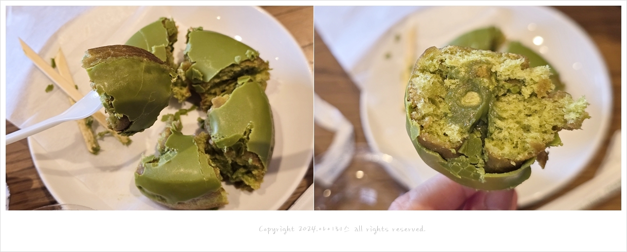퐁신 퐁신 도넛 속에 말차 크림이 들어있어