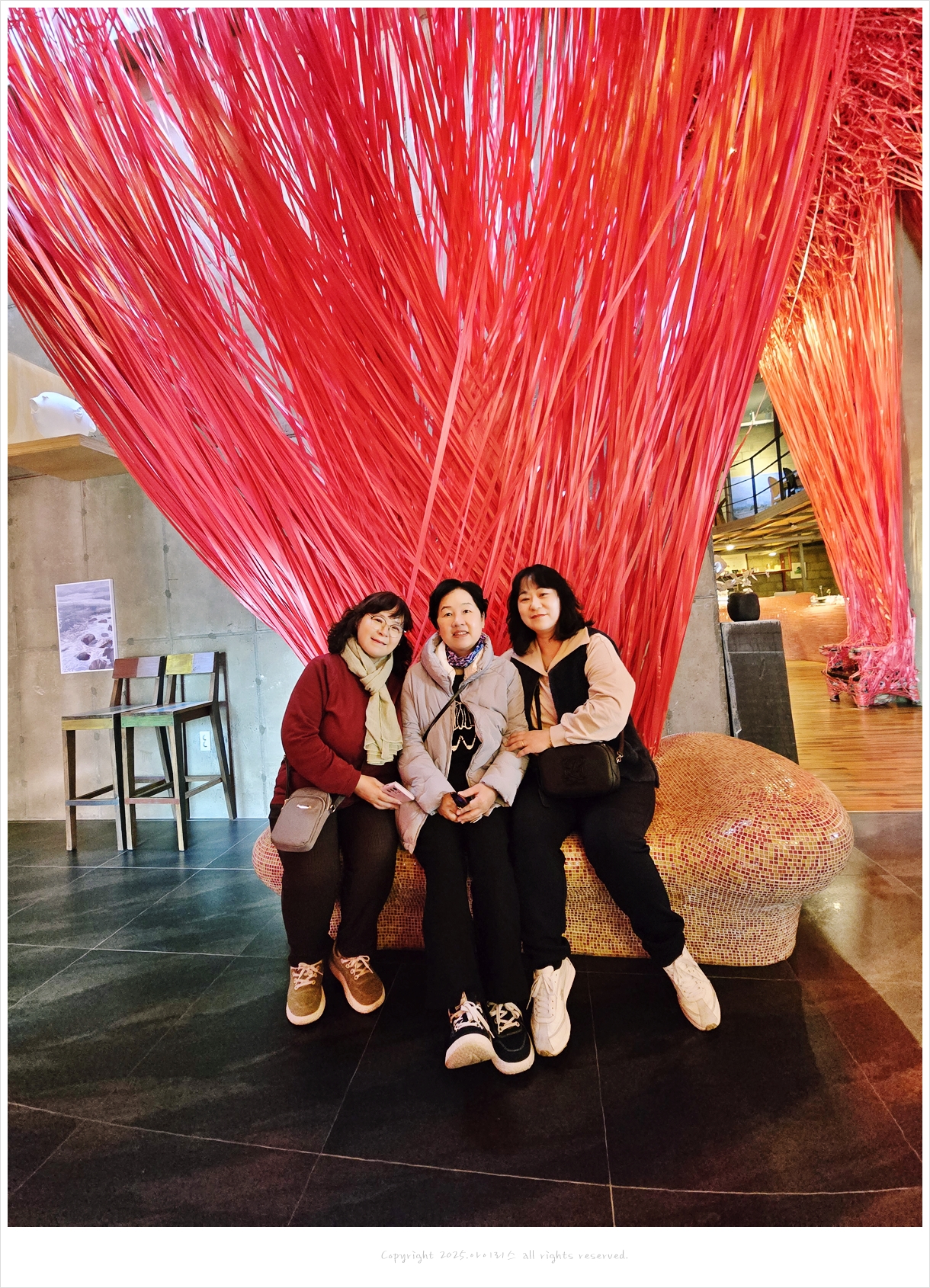 붉은 노끈 사이를 걷다가